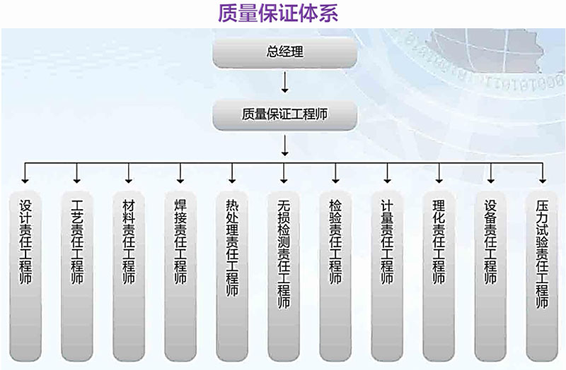 公司具有嚴格的質量保證體系,擁有在壓力容器、壓力管道行業有多年從業經驗的高級工程師、工程師任質量責任工程師,對從設計、工藝、生產到產品檢驗的每一個環節,層層把關,嚴密監控,確保壓力容器產品的質量與安全性能均達到甚至高于《固定式壓力容器安全技術監督規程》、GB150、GB151、GB50235、GB50236等法規、標準、規范要求。